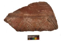 | Description / विवरण | Specimen of red ware with engraved decorative Intersecting lines geometric painting. |