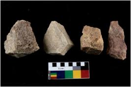 | Description / विवरण | Specimen of a cores with several broad fluted marks and some of them are tapering at one end. |
