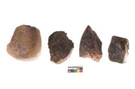 | Description / विवरण | There are n 4 utilized flakes. There are multi directional irregular scar pattern on both dorsal and ventral face of the flakes. some of them are tapering at one end and few are rounded edge. |