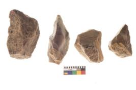 | Description / विवरण | There are n 4 flakes tool; there are multidirectional irregular scar pattern on them; made of short flakes and all four have tapering edges. |