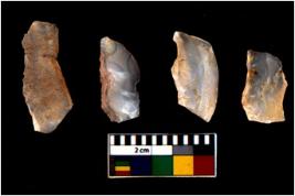 | Description / विवरण | There are n 4 utilized flake cores. There are multidirectional irregular scar pattern on both dorsal and ventral face of the flake cores. |