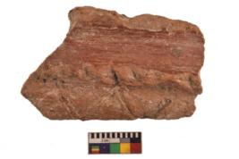 | Description / विवरण | Specimen of red ware with engraved decorative Zigzag lines geometric painting. |