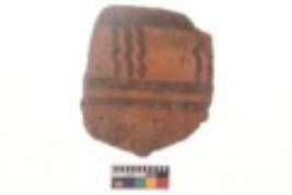 | Description / विवरण | Specimen of black on red ware with black decorative Wavy and horizontal lines geometric painting. |