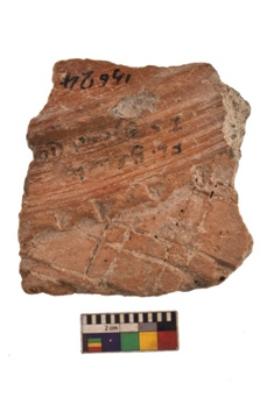 | Description / विवरण | Specimen of red ware with engraved decorative Lattice pattern geometric painting. |
