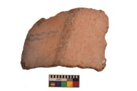 | Description / विवरण | Specimen of black on red ware with black decorative Wavy lines geometric painting. |