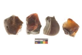 | Description / विवरण | There are n 4 utilized flakes. There are multi directional irregular scar pattern on both dorsal and ventral face of the flakes. three are tapering at one end and one has blunted edge. |