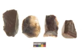 | Description / विवरण | There are n 4 utilized flakes. There are multi directional irregular scar pattern on both dorsal and ventral face of the flakes. three are tapering at one end and one has rounded edge at one end. |