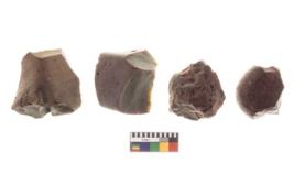 | Description / विवरण | There are n 4 utilized flakes. There are multi directional irregular scar pattern on both dorsal and ventral face of the flakes. two are tapering at one end and two are rounded edges, |