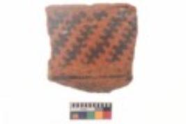 | Description / विवरण | Specimen of black on red ware with black decorative Vertical lines and row of arcs with short vertical strokes geometric painting. |