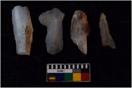 | Description / विवरण | There are n 4 flakes tool; there are multidirectional irregular scar pattern on them; made of short flakes and all four have tapering edges. |