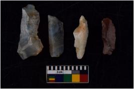 | Description / विवरण | There are n 4 flakes tool; there are multidirectional irregular scar pattern on them; made of short flakes and all four have tapering edges. |
