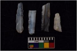 | Description / विवरण | There are n 4 flakes tool; there are multidirectional irregular scar pattern on them; made of short flakes and all four have tapering edges. |