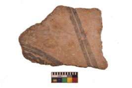 | Description / विवरण | Specimen of black on red ware with black decorative Wavy and vertical lines geometric painting. |