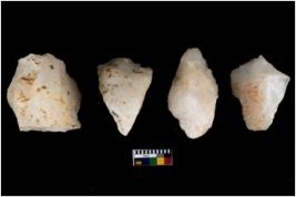 | Description / विवरण | There are n 4 flake cores. All of them are fully fluted flake cores without any trace of crested ridge flakes. Some of them have bluntded edges whereas few have tapering edges. |