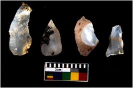 | Description / विवरण | There are n 4 utilized flake cores. There are multidirectional irregular scar pattern on both dorsal and ventral face of the flake cores. |