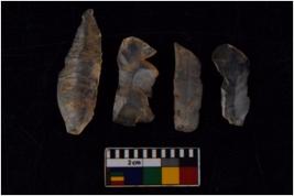 | Description / विवरण | There are n 4 flakes tool; there are multidirectional irregular scar pattern on them; made of short flakes and all four have tapering edges. |