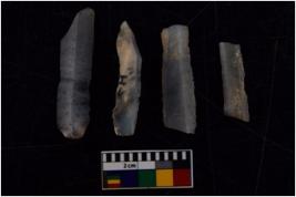 | Description / विवरण | There are n 4 flakes tool; there are multidirectional irregular scar pattern on them; made of short flakes and all four have tapering edges. |