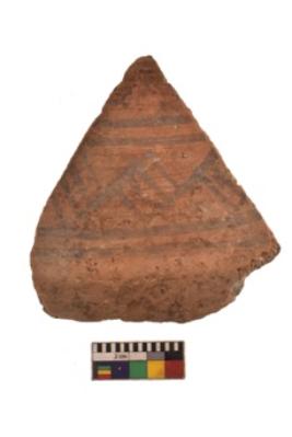 | Description / विवरण | Specimen of black on red ware with black decorative Lattice design geometric painting. |