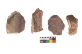 | Description / विवरण | There are n 4 flakes tool; there are multidirectional irregular scar pattern on them; made of short flakes and all four have tapering edges. |