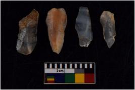 | Description / विवरण | There are n 4 flakes tool; there are multidirectional irregular scar pattern on them; made of short flakes and all four have tapering edges. |