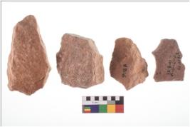 | Description / विवरण | There are n 4 utilized flake cores. There are multidirectional irregular scar pattern on both dorsal and ventral face of the flake cores. One has sharp edges and three have blunted edges. |