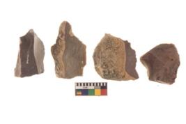 | Description / विवरण | There are n 4 flakes tool; there are large flakes with sides trimmed, Marks of secondary flaking are present on the both the faces. The dorsal is relatively flat. |