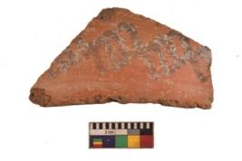 | Description / विवरण | Specimen of black on red ware with black decorative Lattice design geometric painting. |
