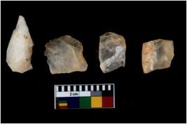 | Description / विवरण | There are n 4 flake cores. All of them are fully fluted flake cores without any trace of crested ridge flakes. Three are tapering edges whereas one has pointed edge. |