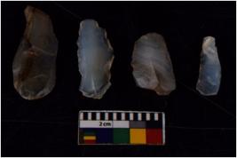 | Description / विवरण | There are n 4 flakes tool; there are multidirectional irregular scar pattern on them; made of short flakes and all four have tapering edges. |