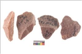 | Description / विवरण | There are n 4 utilized flake cores. There are multidirectional irregular scar pattern on both dorsal and ventral face of the flake cores. One has sharp edges and three have blunted edges. |