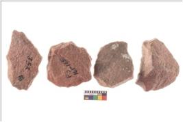 | Description / विवरण | Specimen of flake tools with prominent flaking marks. They are made up of a short flakes with sides trimmed. |