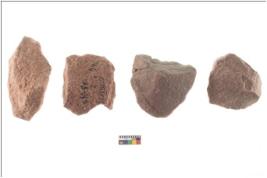 | Description / विवरण | There are n 4 utilized flake cores. There are multidirectional irregular scar pattern on both dorsal and ventral face of the flake cores. One has sharp edges and three have blunted edges. |