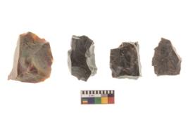 | Description / विवरण | There are n 4 flakes tool; there are flakes tool with prominent flaking marks. It made up of a large flakes with sides trimmed. It is rectangular in shaped. |
