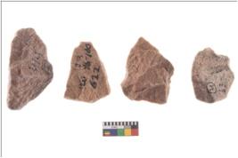 | Description / विवरण | Specimen of flake tools with prominent flaking marks. They are made up of a short flakes with sides trimmed. |