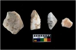 | Description / विवरण | There are n 4 flakes tool; there are flakes tool with prominent flaking marks. It made up of a large flakes with sides trimmed. It is rectangular in shaped. |