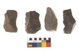 | Description / विवरण | There are n 4 flakes tool; there are large flakes with sides trimmed, Marks of secondary flaking are present on the both the faces. The dorsal is relatively flat. One is pointed functional top. |