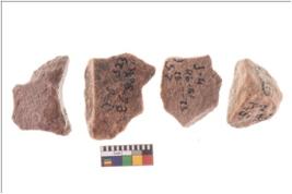 | Description / विवरण | Specimen of flake tools with prominent flaking marks. They are made up of a short flakes with sides trimmed. |