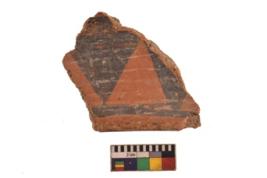 | Description / विवरण | Specimen of black on red ware with black decorative Triangles geometric painting. |