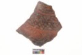 | Description / विवरण | Specimen of black on red ware with black decorative Diamond lattice geometric painting. |