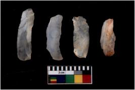 | Description / विवरण | There are n 4 Flake tool; There are multidirectional irregular scar pattern on them. few have blunt edges, Some of them are tapering at one end. |