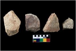 | Description / विवरण | Specimen of a cores with several broad fluted marks and some of them are tapering at one end. |