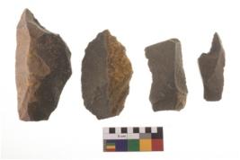 | Description / विवरण | There are n 4 flakes tool; there are flakes tool with prominent flaking marks. It made up of a large flakes with sides trimmed. It is rectangular in shaped. |