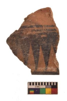 | Description / विवरण | Specimen of black on red ware with black decorative Elongated vertical triangles geometric painting. |