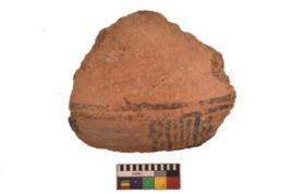| Description / विवरण | Specimen of black on red ware with black decorative Wavy and vertical lines geometric painting. |