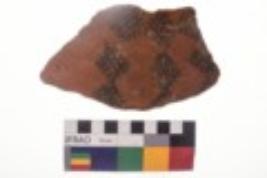 | Description / विवरण | Specimen of black on red ware with black decorative Group of octahedron like lattice design geometric painting. |