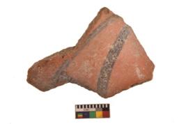 | Description / विवरण | Specimen of black on red ware with black decorative Curves with strokes geometric painting. |