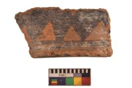 | Description / विवरण | Specimen of black on red ware with black decorative Triangles geometric painting. |
