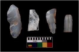 | Description / विवरण | There are n 4 Flake tool; There are multidirectional irregular scar pattern on them. few have blunt edges, Some of them are tapering at one end. |