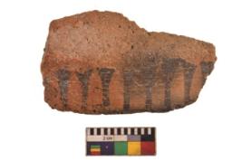 | Description / विवरण | Specimen of black on red ware with black decorative Broad vertical lines geometric painting. |