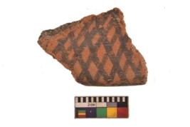 | Description / विवरण | Specimen of black on red ware with black decorative Diamond lattice design geometric painting. |
